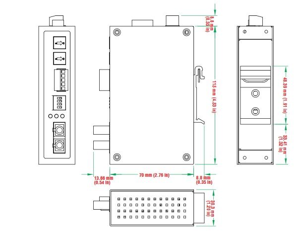 - Anschluss: 5-poliger Terminalblock (seriell), ST-Stecker (LWL)