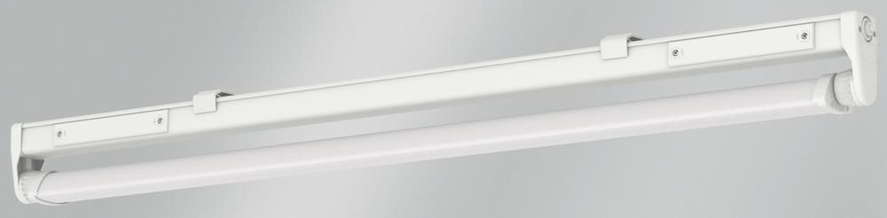 Kunststoffleuchte mit LED-Bestückung. Einsetzbar in industriellen und öffentlichen Anwendungen und in Bereichen mit besonderen Schutzanforderungen. Witterungs- und UV-beständiges Leuchtengehäuse aus glasfaserverstärktem Kunststoff, ähnlich RAL 9010. Einsetzbar im Innen- und überdachten Außenbereich gemäß Schutzart IP 65. Lampen- und Geräteraum thermisch getrennt. Kurzes Dichtungssystem bestehend aus alterungsbeständigem, formstabilem Silikon-/Synthese-Kautschuk. Um 2 x 90° schwenkbarer Schutzrohr-Reflektor aus PMMA Transopal® (schlagzäh) mit innenliegendem Aluminiumreflektor (MIRO-SILVER®). Stufenlose Arretierung des Schutzrohr-Reflektors möglich. Leuchte montage- und anschlussfertig. Eingebautes Betriebsgerät 230 V AC/DC. Zwei seitliche Anschlussdeckel, zwei stirnseitige Kabelmembrane M20. Einzel- oder Lichtbandmontage. Decken- oder Wandbefestigung durch zwei Befestigungsklammern aus Kunststoff, variabler Befestigungsabstand.