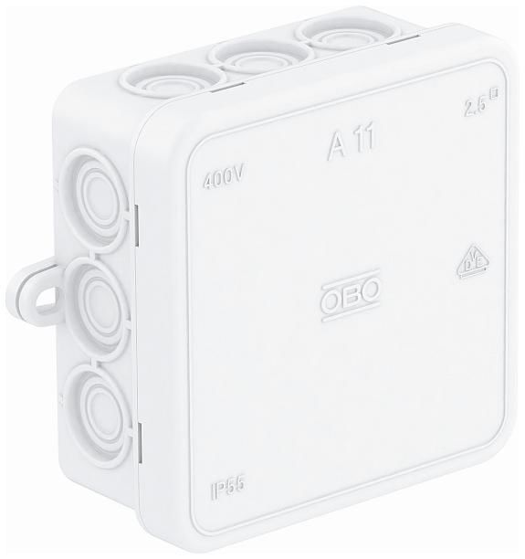 OBO Bettermann 2000180 OBO A 11 HF RW Kabelabzweigkasten 85x85x40 PE reinweiß RAL9010