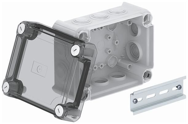 Kabelabzweigkasten gemäß DIN EN 60670. Flammwidrig nach DIN EN 60695-2-11, Prüftemperatur 650°C. Schlagfestigkeit IK07 gemäß DIN EN 50102.