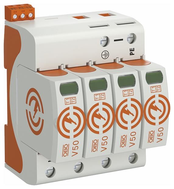 . Blitzstromableitvermögen 12,5 kA (10/350) pro Pol und bis zu 50kA (10/350) gesamt