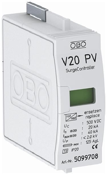 OBO Bettermann 5099708 OBO V20-C 0-500PV SurgeController V20 Oberteil 500VDC für PV-Anlagen