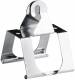 Die Schwenkvorrichtung ist ein vielseitiges Anschlussstück, mit dem sich Maxos TL-D- und TL5-Lichtbänder in einem beliebigen Winkel (mindestens 45°) miteinander verbinden lassen. Aufgrund ihres attraktiven Designs kommt sie sehr oft in Geschäften, Schulen und Museen zum Einsatz. An eine Schwenkvorrichtung lassen sich bis zu vier Lichtbänder anschließen. Das Gehäuse besteht aus weiß oder silbern beschichtetem Kunststoff, die inneren Stützelemente sind aus Stahl gefertigt. Bei Bedarf können an der Vorrichtung auch Lichtregelsensoren, Lautsprecher usw. angebracht werden. Sie wird mit einem vormontierten einstellbaren Bügel und einer 1,25 Meter langen langen Seilabhängung ausgeliefert. Die Verbindung mit der Tragschiene erfolgt über ein spezielles Kupplungsstück (9MX056 CP-SD WH/SI) pro Schienenabschnitt. Elektrische Komponenten für die Durchführung der Stromleitung müssen je nach Bedarf separat bestellt werden.Lieske-Nr.: 126459