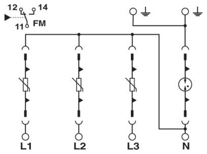 Überspannungsableiter bestehend aus Basiselement mit FM-Kontakt und Schutzsteckern, zur Montage auf NS 35/7,5, Nennspannung: 230 V AC, 3 + 1-Schaltung