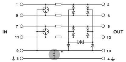 Schutzstecker PT mit HF-Schutzschaltung für 4 Signaladern. Nennspannung: 12 V DC
