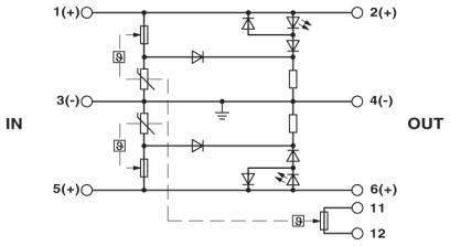 Schutzstecker PT mit Schutzschaltung für höhere Signalspannungen, 2-kanalig, optische Defektanzeige. Nennspannung: 230 V AC