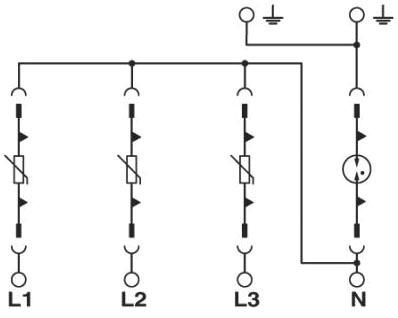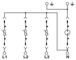 Überspannungsableiterkombination 4-kanalig (in 3+1 Schaltung), zur Montage auf NS 35/7,5, Spannung 230 V AC
