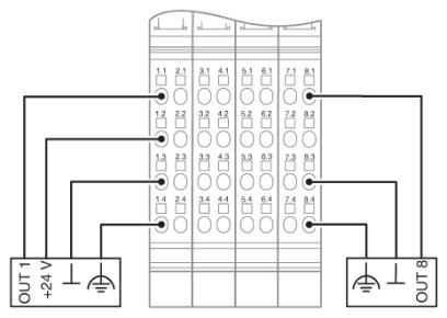 8 digitale AusgängeAnschluss der Aktoren in 2-, 3- und 4-Leitertechnik