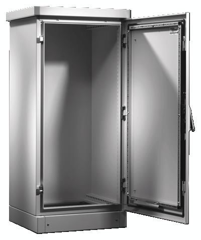 Beschreibung: Outdoorgehäuse, mit 100 mm Transportsockel und allseitig überstehendem Regendach.