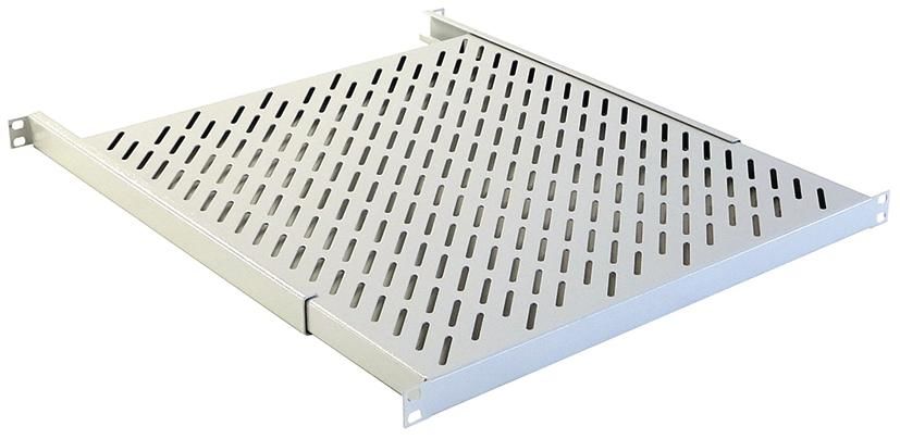mit 4-fach Befestigung und stufenloser Tiefenanpassung (max. Einbaumaß T + 100 mm), Tragkraft: 50 kg, Material: 1,5 mm Stahlblech, Oberfläche: pulverbeschichtet RAL 7035, Lieferung: mit Befestigungsmaterial