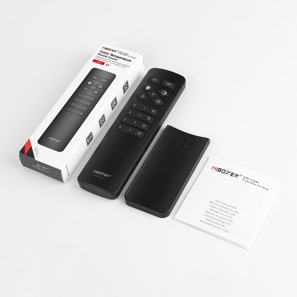 Der Artikel Synergy 21 LED Fernbedienung 2,4GHz 4 Zonen dual white (CCT) *Milight/Miboxer* (b) ist derzeit auf Lager