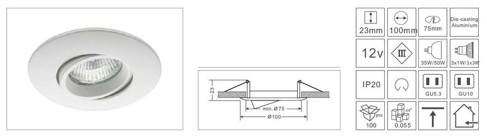 Deckeneinbausatz für GU10 oder GX5,3 Spots
