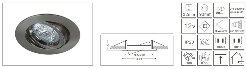 Deckeneinbausatz für GU10 oder GX5,3 Spots