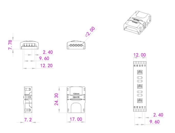 RGBW LED Strip Connector 5 Pin 12mm is workable to both RGB+White SMD and RGBW 4-in-1 tape light