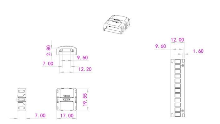 no wire, 2 pin, DC3V-24V / 5A for PCB width: 12mm single color Solderpad: 2