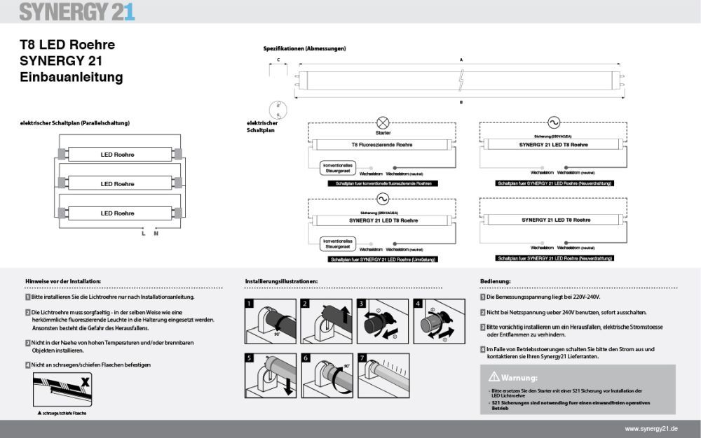 Synergy 21 LED Tube T5 / T8 zub Standardnetzteil zub Notstromversorgung 230V