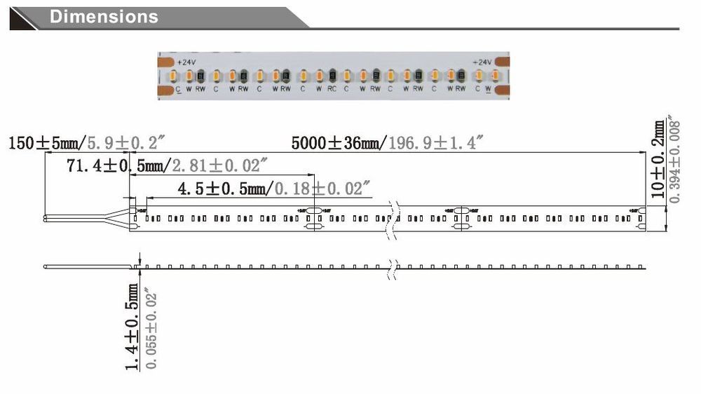 LED Anzahl: 224*2110SMD/m, Gesamt: 1120LEDs
