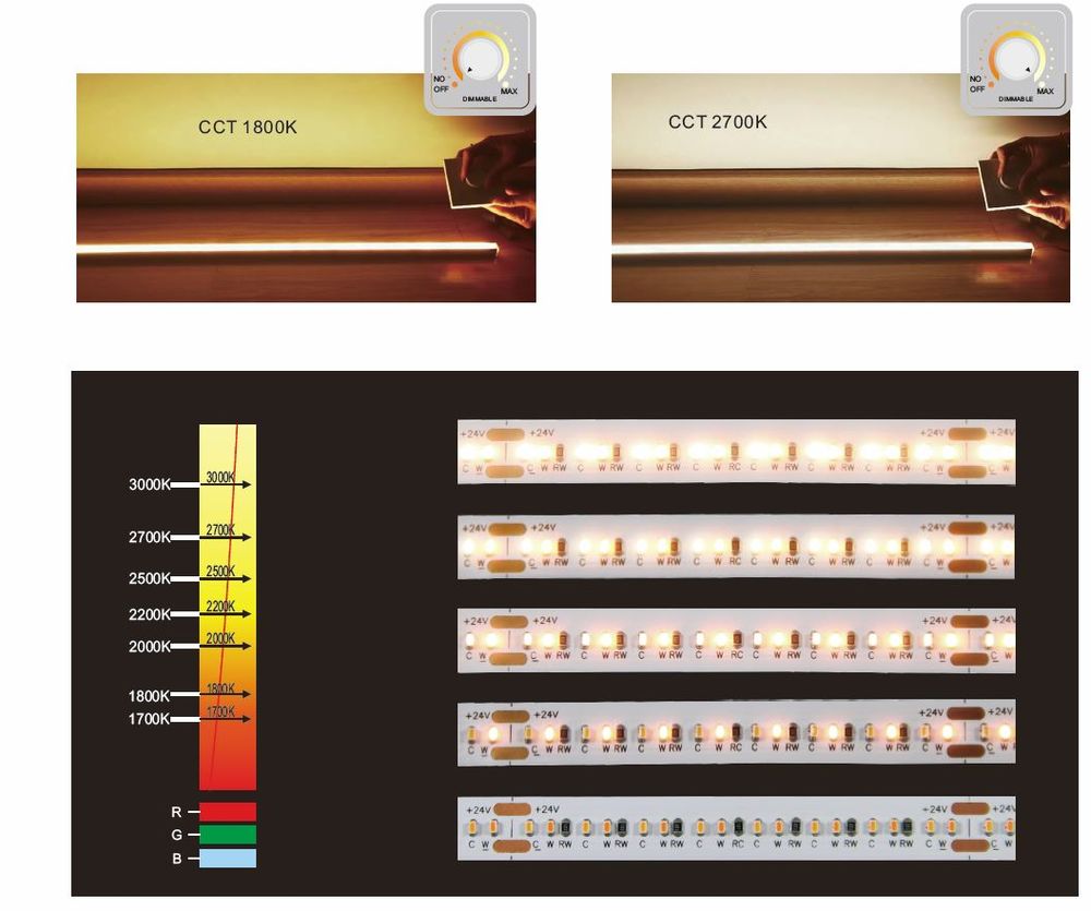 Lichtfarbe: warmweiss , 2700K bis 1800K, CRI>90 (R9>60)