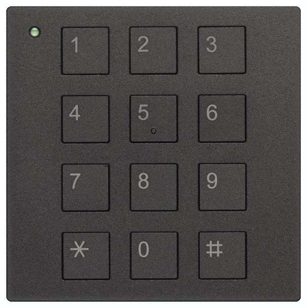 Codeschlossmodul für Außenstationen in individualisierter Bestückung, Unterputzmontage, hinter 3 mm Frontblenden integrierbar, frontbündiger Einbau für Frontblenden von 1,5 mm bis 2,5 mm durch beiliegende Distanzplatten, sichtbare Frontabmessung 82 mm x 82 mm (Ausschnitt), Modulrasterabstand 120 mm, LED?s zur Statusanzeige, optische und akustische Quittung bei Codeeingabe, TCS-BUS fähig, 10 Zugangscodes (max. 6-stellig) mit individuellen Auslösefunktionen, - Türöffnerfunktion mit potentialfreiem Relaiskontakt (Wechsler: 24 V DC / 2 A), - allgemeine und spezifische Steuerfunktionen, ein Mastercode zur Wartung und Konfiguration, Programmierung manuell, In Tastaturmodus umschaltbar, 3-Draht-Technik erforderlich, Eingangsstrom: I(a) = 0,4 mA, I(P) = 14 mA, maximaler Eingangsstrom: I(Pmax) = 59 mA, zulässige Umgebungstemperatur: -25 °C bis 55 °C, Maße: H 105 x B 105 x T 19, Material: Aluminium, eloxiert schwarz