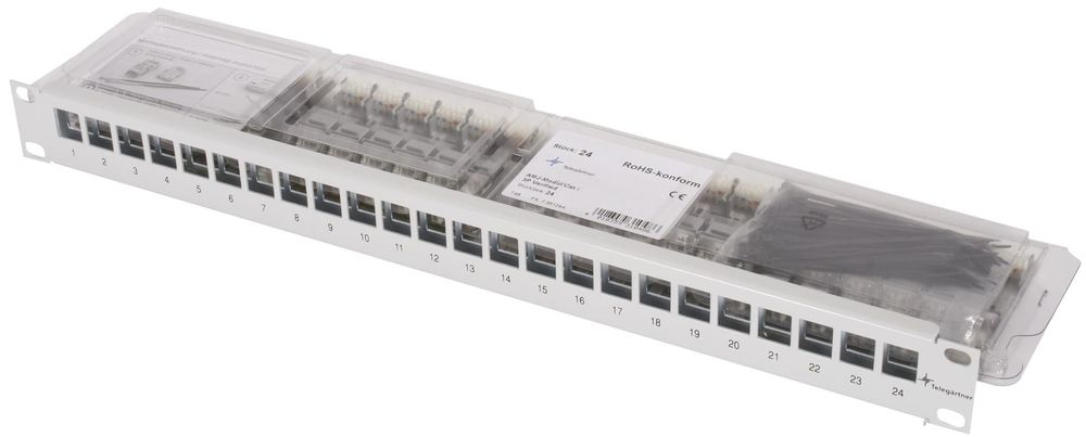 Telegärtner 100007013 TEGA 19z Modulträger 1HE RAL7035 mit KAF+ 24xAMJ-S Modul Cat.6a