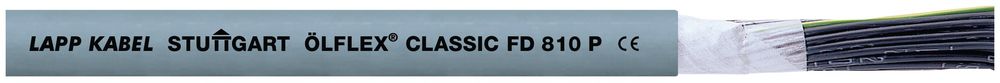 Steuerleitung ÖLFLEX® CLASSIC FD 810 P 25G1 500 M, Steuerleitung, 25G1, Core-Line, U0/U: 300/500 V, PUR, Aderidentifizierung: Nummern, Schleppkette, Anwendungsgebiete: PUR-Außenmantel ist unempfindlich gegenüber mineralölbasierten Schmiermitteln und vielfach chemisch beständig,Leitungsaufbau erlaubt flexiblen, dauerbewegten Einsatz in beweglichen Maschinenteilen und in der Schleppkette,PUR-Außenmantel hält hohen mechanischen Belastungen stand,Für die Verwendung in Steuer-, Regelungs- und Messstromkreisen,Einsetzbar in trockenen, nassen und speziell in rauen und öligen Umgebungen,Für den Außenbereich geeignet, unter Beachtung des Temperaturbereichs, Nutzen: Langlebiger Schleppketteneinsatz bei mittleren Verfahrwegen oder erhöhten Beschleunigungen (LAPP-Performanceklasse 'Core Line'),Unempfindliches Produkt, dank abrieb-, kerb- und schnittfestem PUR-Außenmantelmaterial,Hochflexibler Leitungsaufbau bedingt sehr gute Produktperformance,Kürzere Aderverseilung erlaubt sehr kleine Biegeradien