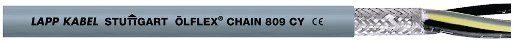 Steuerleitung ÖLFLEX® CHAIN 809 CY 4G0,75, Steuerleitung, 4G0.75, Basic-Line, U0/U: 300/500 V, PVC, Aderidentifizierung: Nummern, Geschirmt, UL recognized, Schleppkette, Anwendungsgebiete: Für die Verwendung in Steuer-, Regelungs- und Messstromkreisen,Speziell für Umgebungen, in denen elektromagnetische Verträglichkeit (EMV) gefordert ist,Für leichte mechanische Beanspruchung geeignet,PVC-Außenmantel ist beständig gegenüber Säuren und Laugen und bedingt ölbeständig,Leitungsaufbau auch für Torsionsanwendungen in Windkraftanlagen geeignet,Einsetzbar in trockenen, feuchten und nassen Räumen,Leitungsaufbau erlaubt flexiblen, moderat dauerbewegten Einsatz in beweglichen Maschinenteilen und in der Schleppkette, Nutzen: Idealer Schutz vor elektromagnetischer Störung durch Kupferabschirmgeflecht mit hohem Bedeckungsgrad,Betriebsspannung von 1000 V nach UL für Nordamerika zulässig,Klassifiziertes Brandverhalten gemäß EU-Richtlinie 305/2011 (BauPVO/CPR) mit Artikelnummer-Auswahl auf der LAPP-Website,Produkt mit Mehrfach-Zertifizierung ermöglicht universellen Einsatz, reduziert Teilevielfalt und sorgt so für Einsparungen in der Logistik,Verzicht auf Innenmantel bewirkt geringeres Gewicht und kleinere Außendurchmesser ,Langlebiger Schleppketteneinsatz bei moderaten Verfahrwegen oder Beschleunigungen (LAPP-Performanceklasse 'Basic Line'),UL-/CSA-Zertifizierung gemäß Technischen Daten ermöglicht Verwendung des Produkts im nordamerikanischen Raum