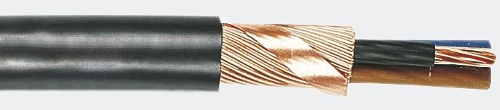 Konzentrischer Leiter: aus blanken Kupferdrähten um die gemeinsame Aderumhüllung ver-seilt mit Gegenwendel aus Kupfer-band