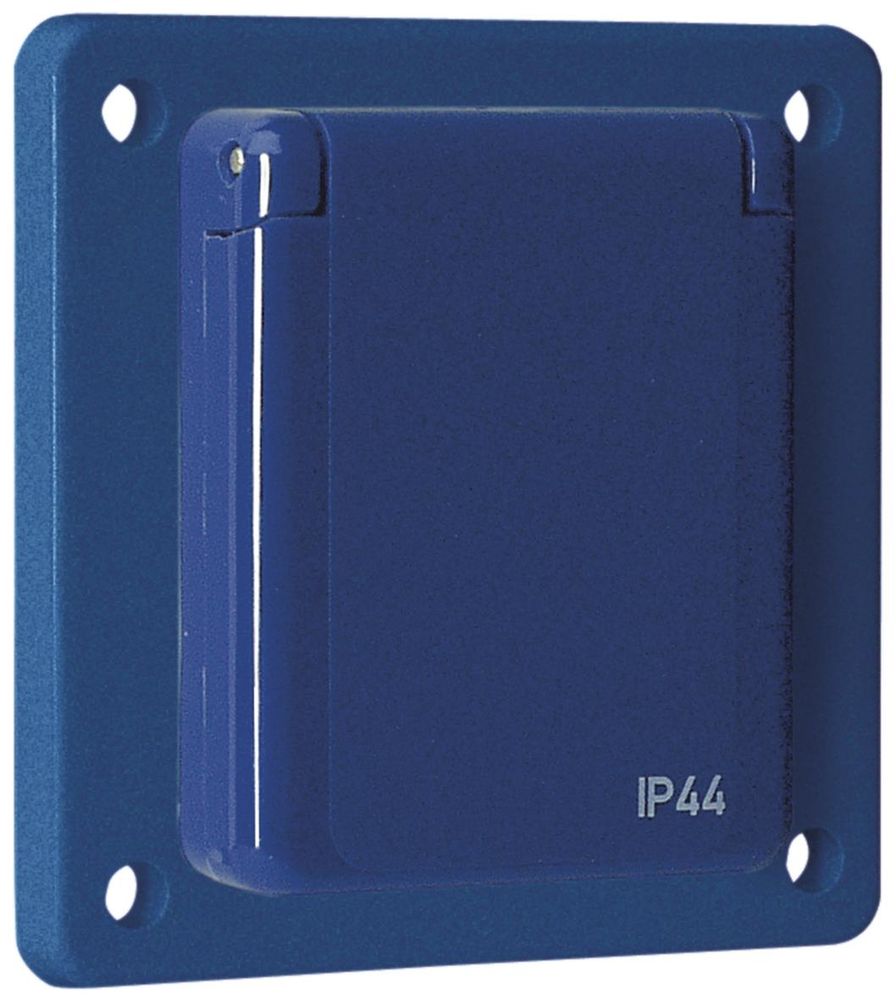 Walther-Werke 10005 Walther Schutzkontaktsteckdose 16A 230V 2P+E IP44 blau Flansch 75x75mm