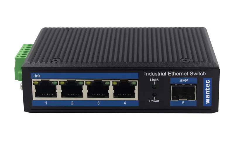 Wantec - Industrial Fiber Ethernet Switch für Hutschiene, 4 Port + 1 SFP
