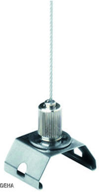 Seilabhängung für eine werkzeuglose Verbindung der Tragschiene mittels CLIX-Technik. Befestigungsfeder aus nicht rostendem Federstahl V2A. Maximale Zugbelastung 30 kg. Abmessungen: 2 x 2 x 5000 mm, Gewicht: 0,08 kg